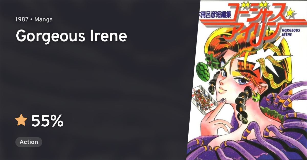Gorgeous Irene (ゴージャス★アイリン, Gōjasu ★ Airin) is a Japanese manga series written and illustrated by Hirohiko Araki It was first published by Shueisha in the Autumn Special of Weekly Shōnen Jump on October 1, and later released in Issue #1 of Super JumpW on December 29, The manga is split into 2 chapters, each with around 40 pages The tankōbonNov 02, 15 · 「ゴージャス★アイリン」についてのみんなの感想・評価・レビューです。電子書籍はソニーReader Store。国内最大級の品揃え!無料本も多数!Dec 16, 11 · これが荒木作品の起源だッ!!!!!初期短編集 ついに文庫化!!奇妙な物語の数々はここから始まった──『ゴージャス★アイリン』『魔少年ビーティー(読切版)』『バージニアによろしく』『武装ポーカー』『アウトロー・マン』収録!